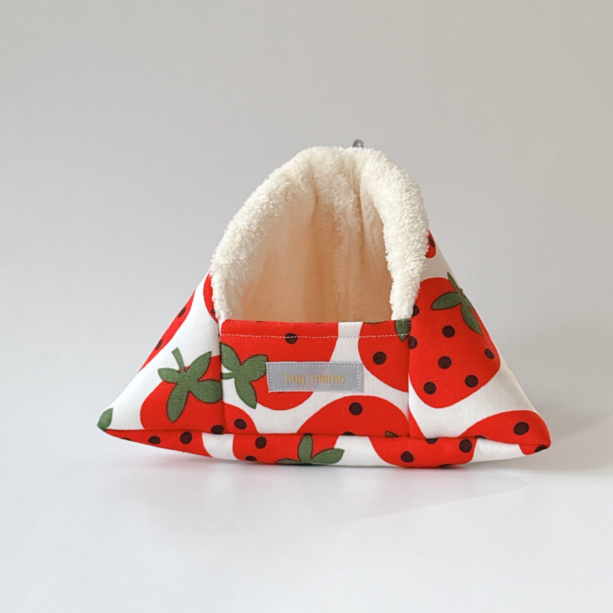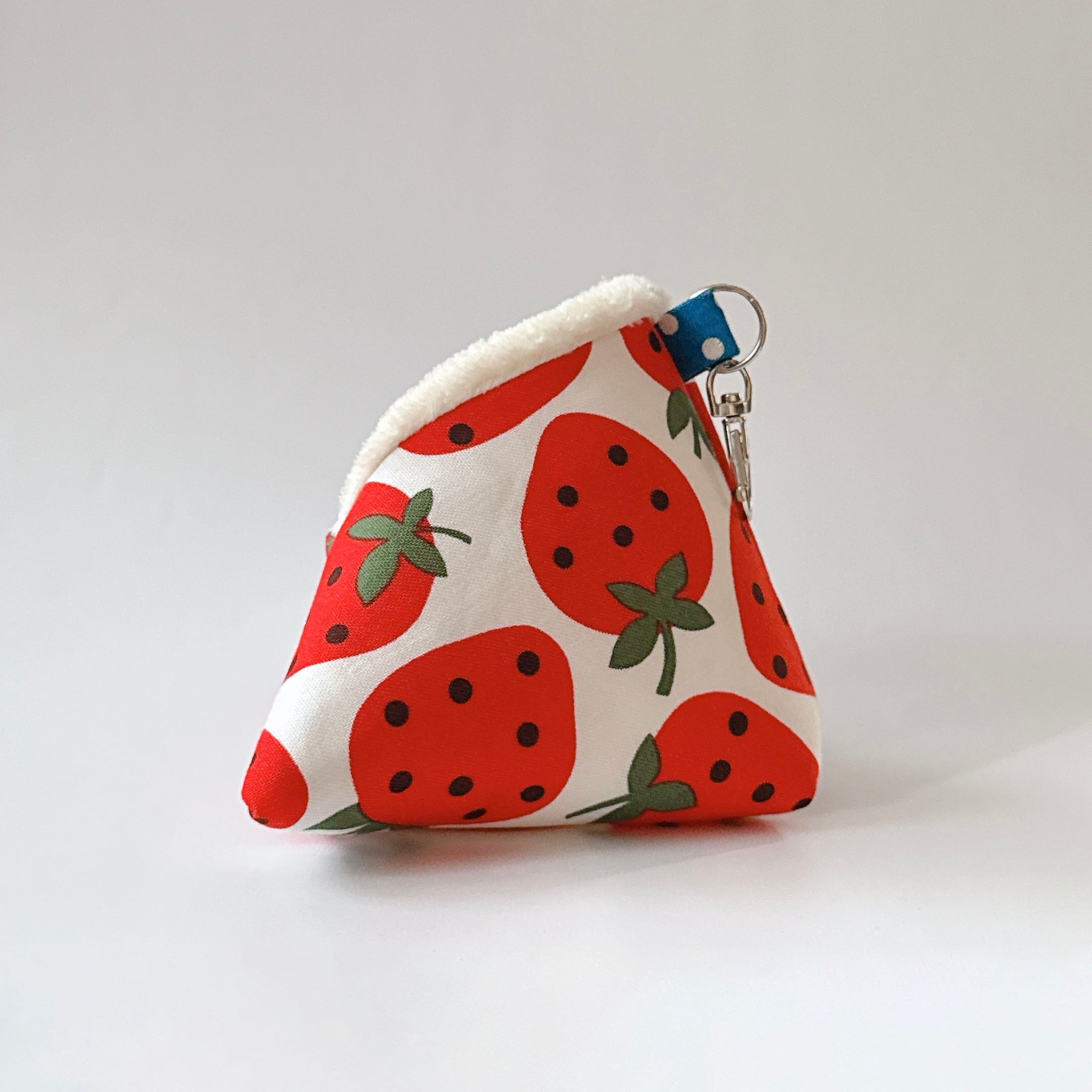 さんかくポーチS(大きめいちご柄/白地)*モモンガポーチ