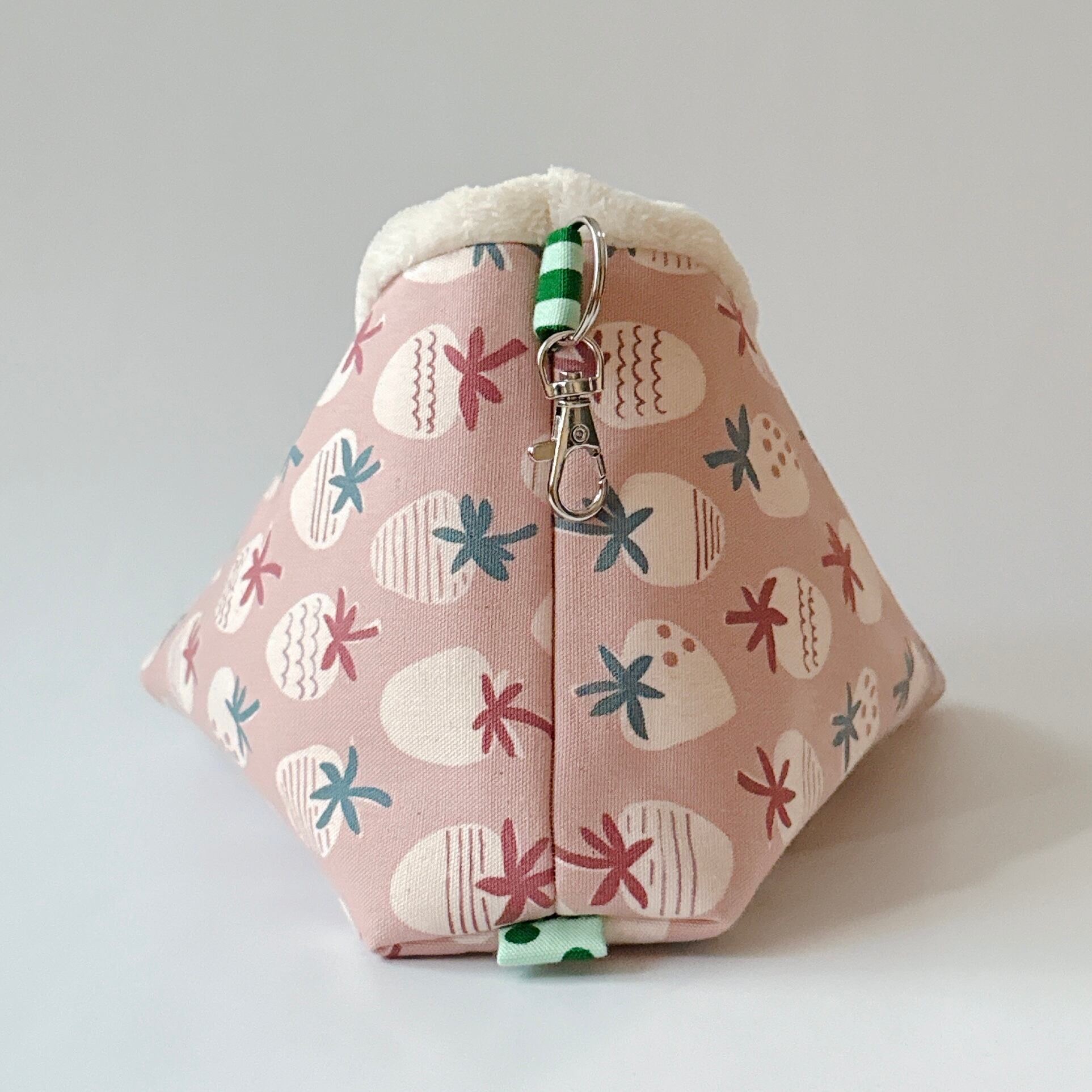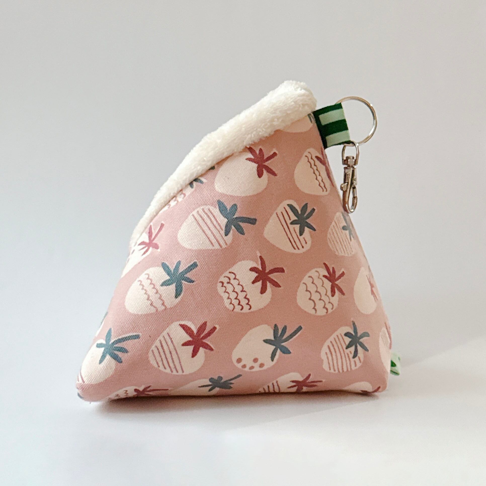 さんかくポーチL(いちご柄/くすみピンク地)*モモンガポーチ