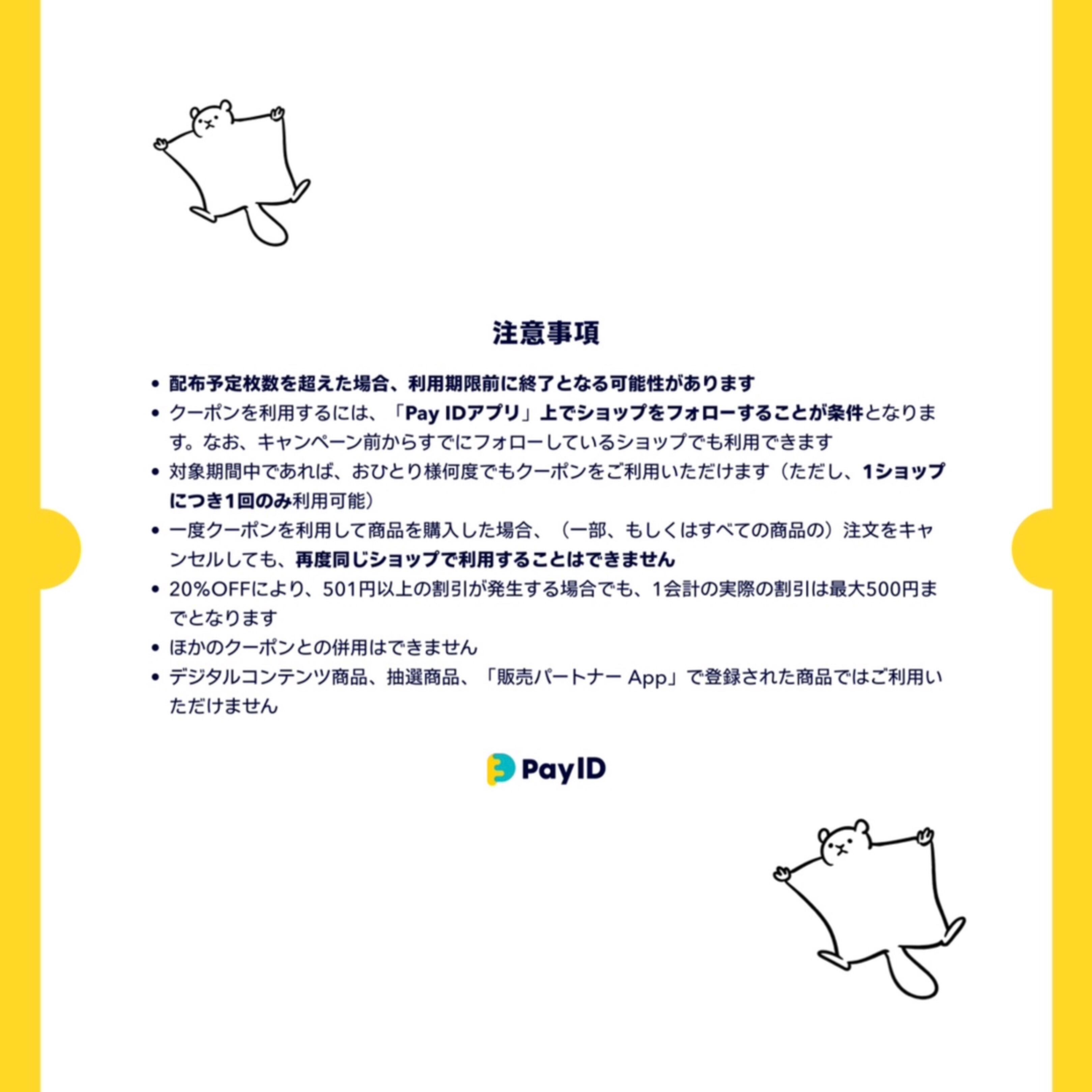 【Pay IDアプリ限定フォロー割キャンペーン20%OFF❗️】