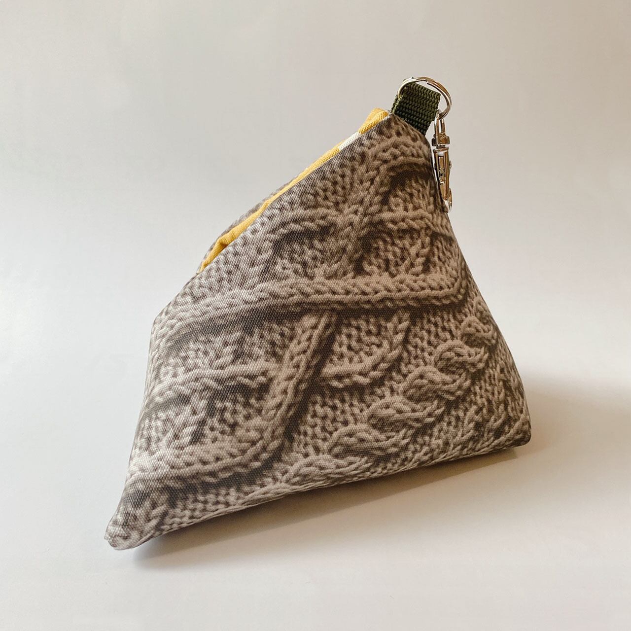 ■ さんかくポーチM(リアル縄編み柄/グレー) ■