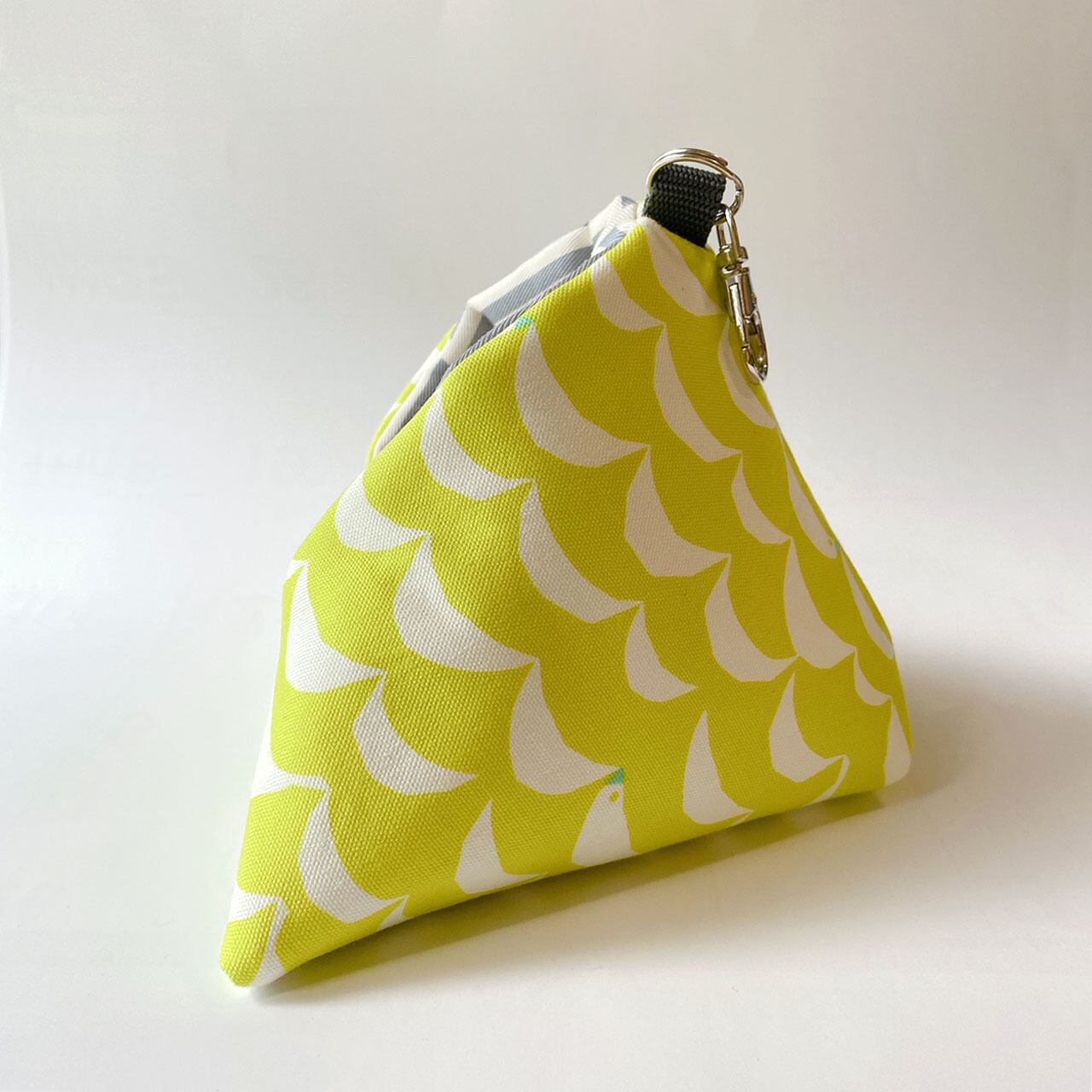 さんかくポーチM(ことり柄/イエローグリーン)*モモンガポーチ