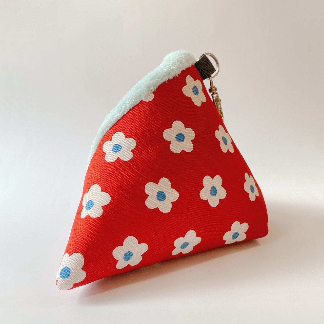 さんかくポーチM(お花柄/レッド)*モモンガポーチ