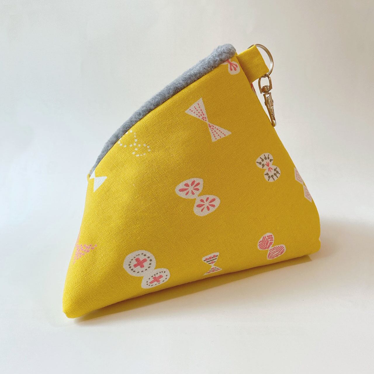 さんかくポーチL(ちょうちょ柄/イエロー)*モモンガポーチ
