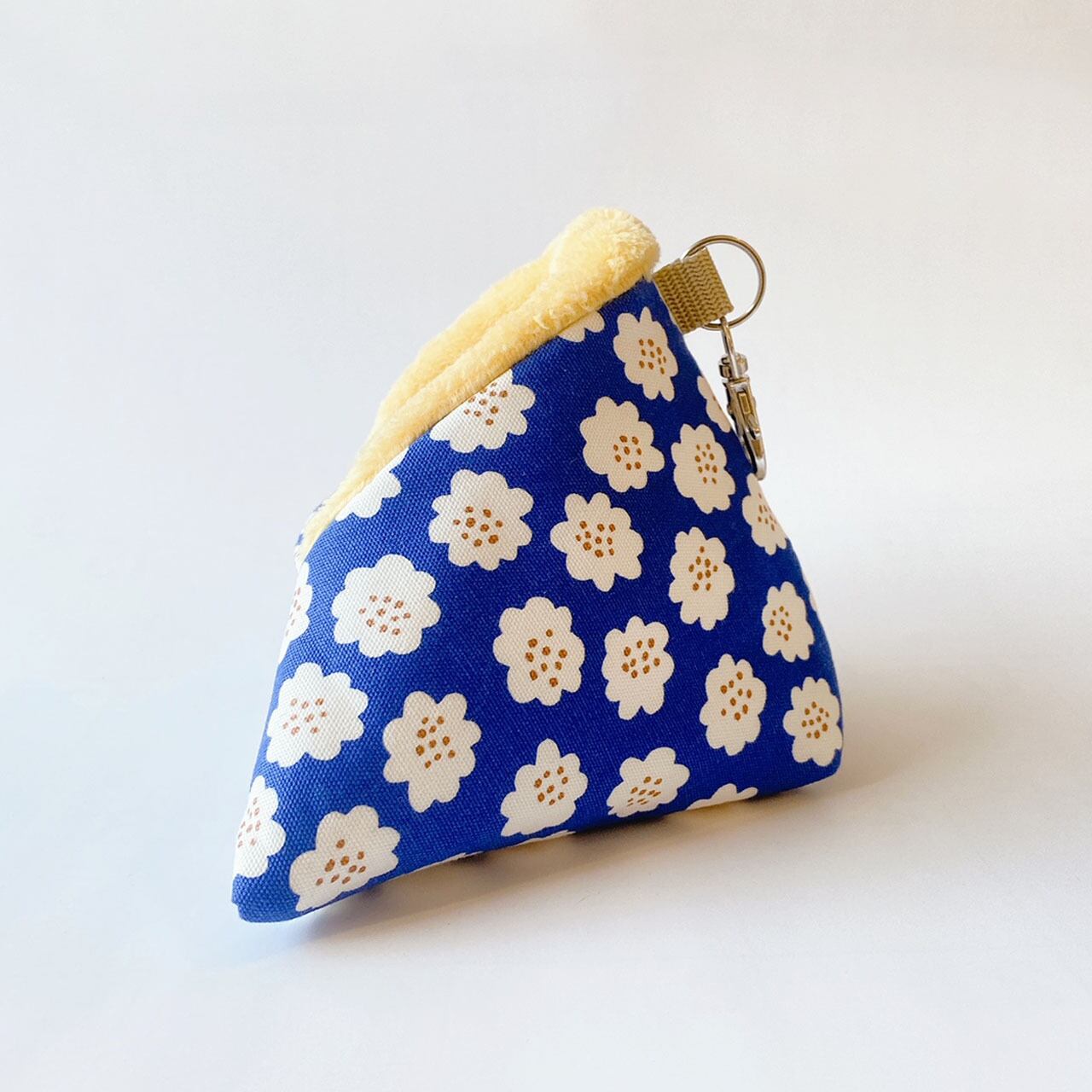 さんかくポーチS(ブーケ柄/ブルー)*モモンガポーチ