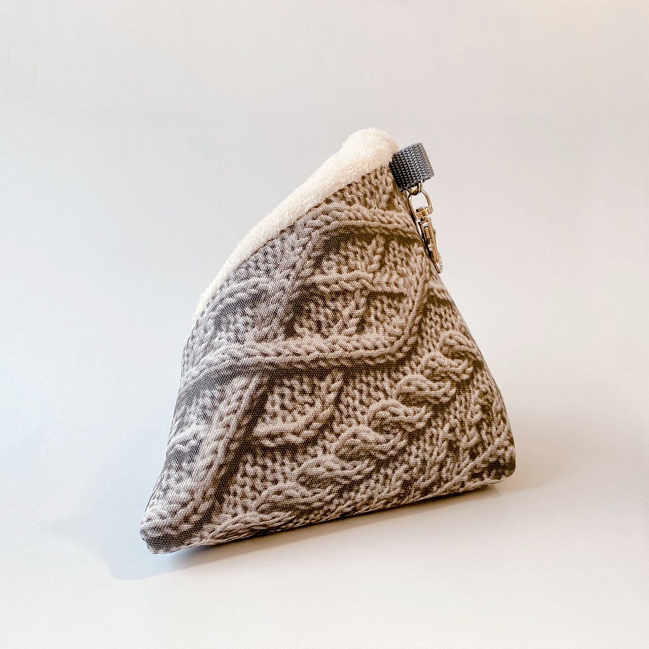 ■ さんかくポーチM(リアルなわ編み柄/グレー) ■