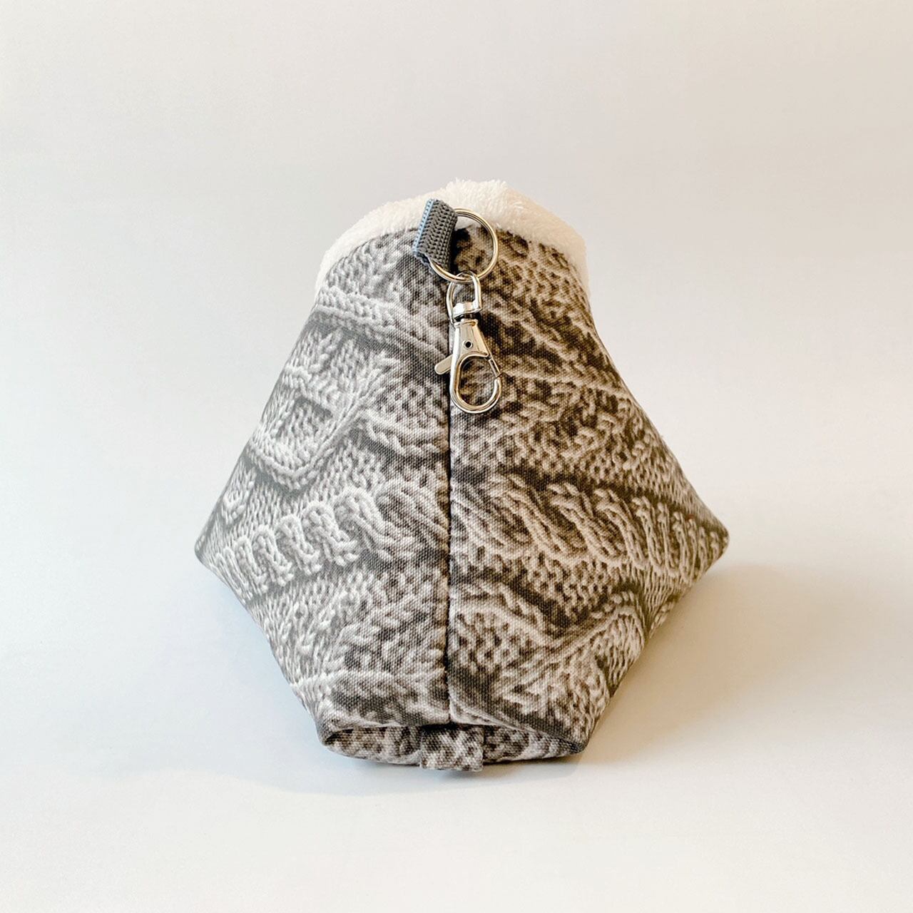さんかくポーチM(リアルなわ編み柄/グレー)*モモンガポーチ