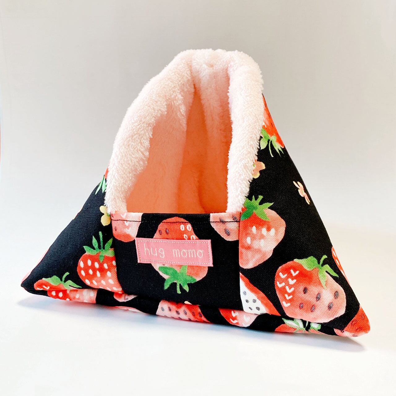 《お一人さまにつき全ポーチから1個まで》さんかくポーチL(いちご柄/黒地)*モモンガポーチ