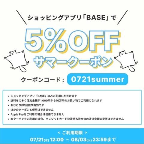 ☀️サマークーポン5%OFFクーポンプレゼント中☀️