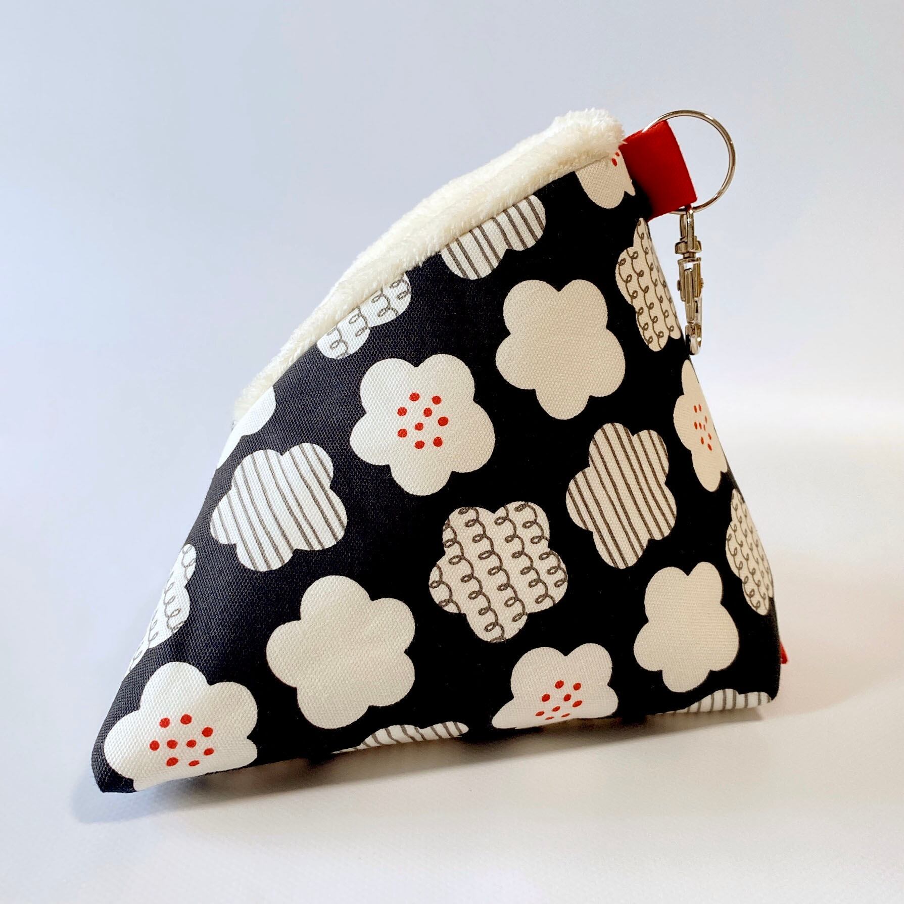 さんかくポーチL(北欧風お花柄/ブラック)*モモンガポーチ