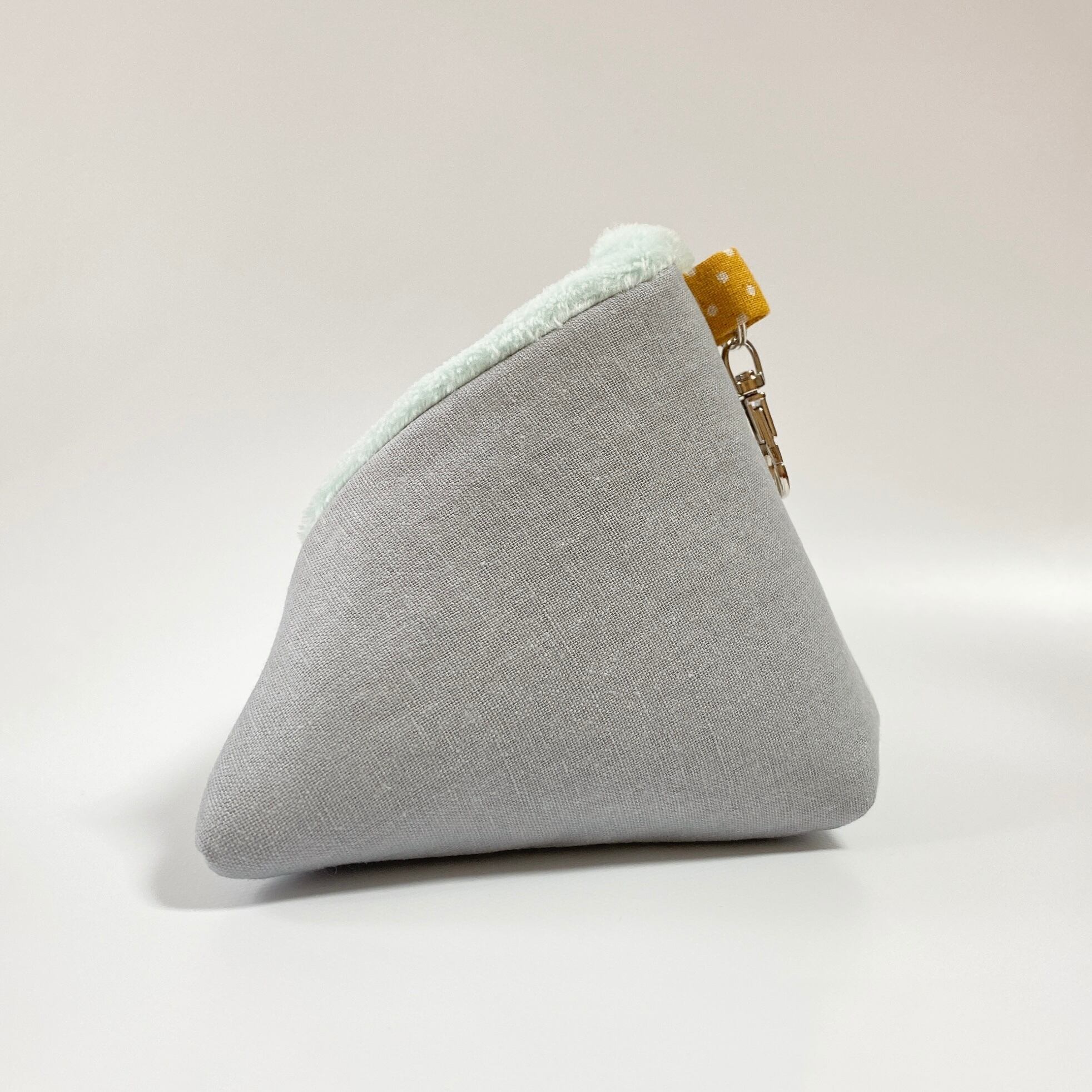 さんかくポーチS(ビションフリーゼ柄/グレー)*モモンガポーチ