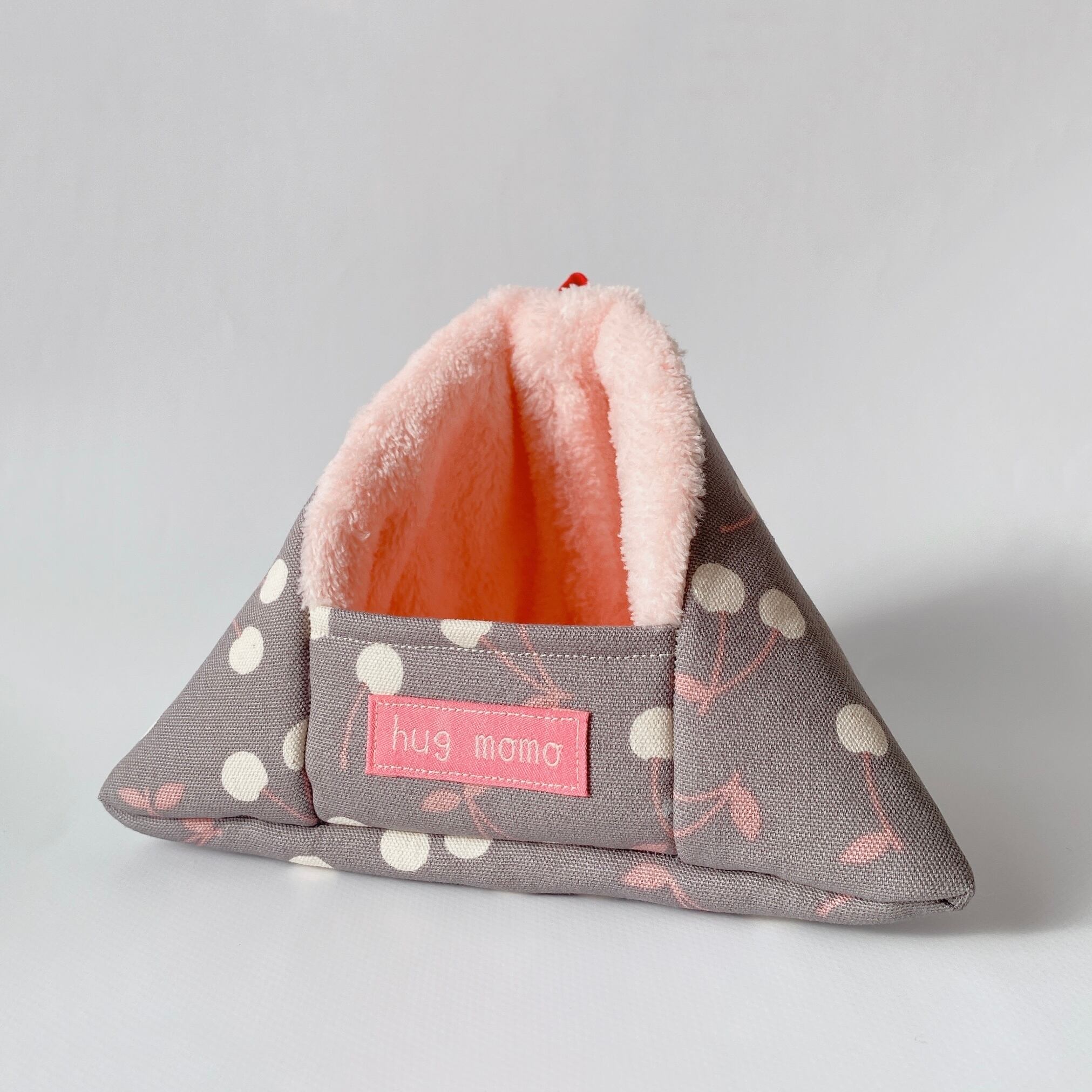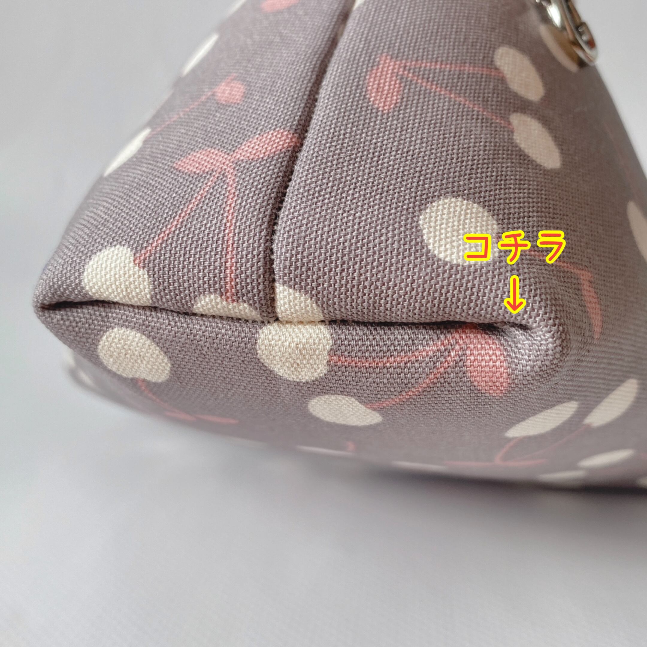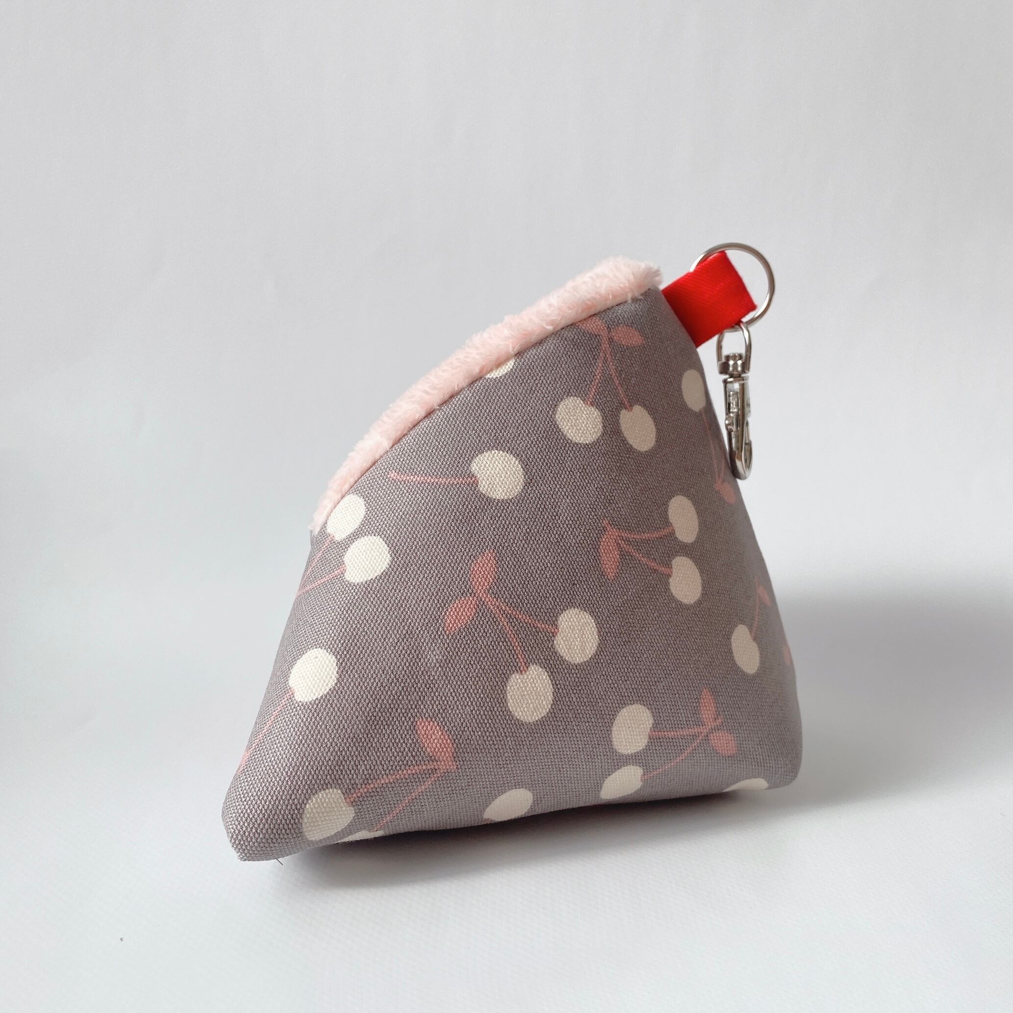 ◉シワあり◉さんかくポーチS(さくらんぼ柄/グレー地)*モモンガポーチ