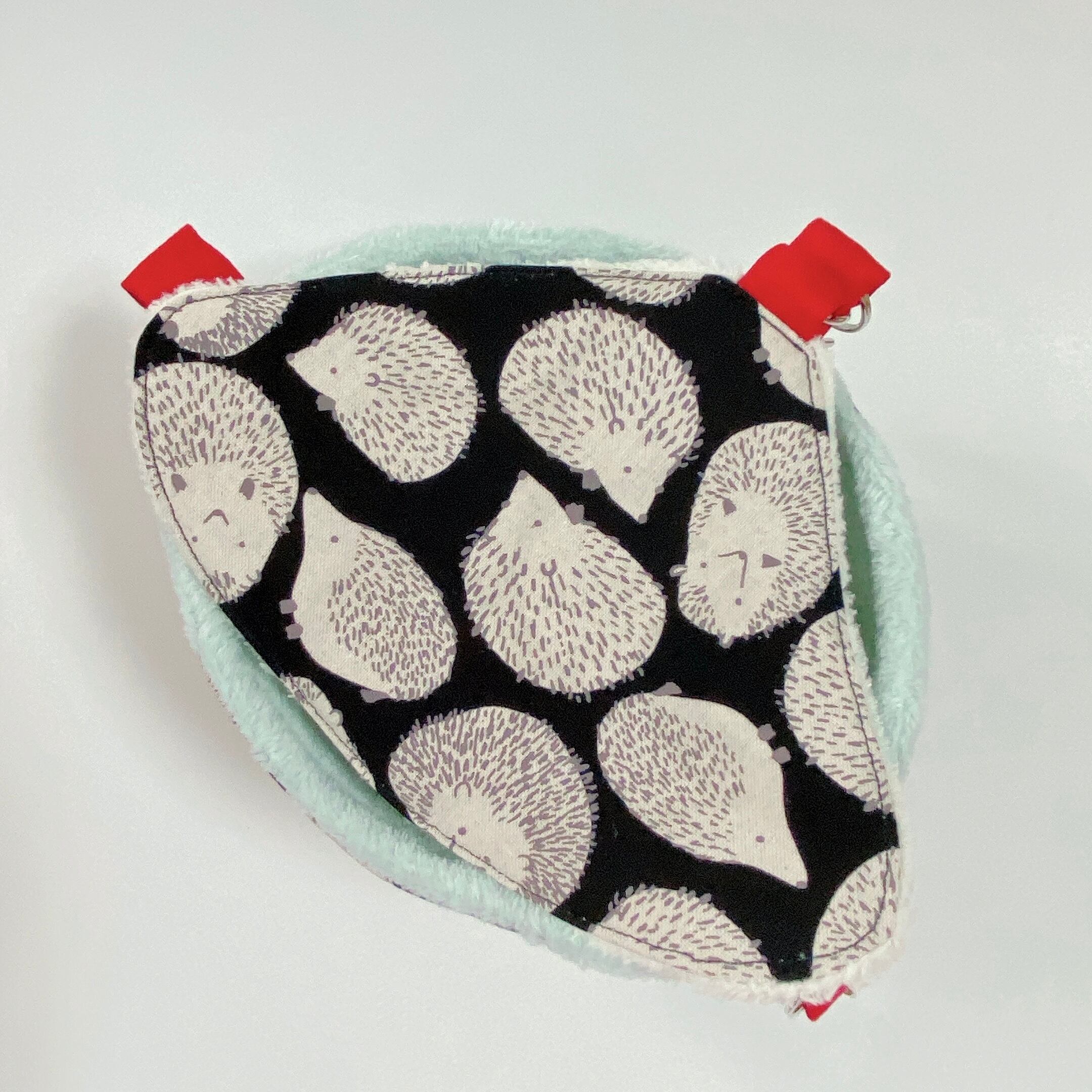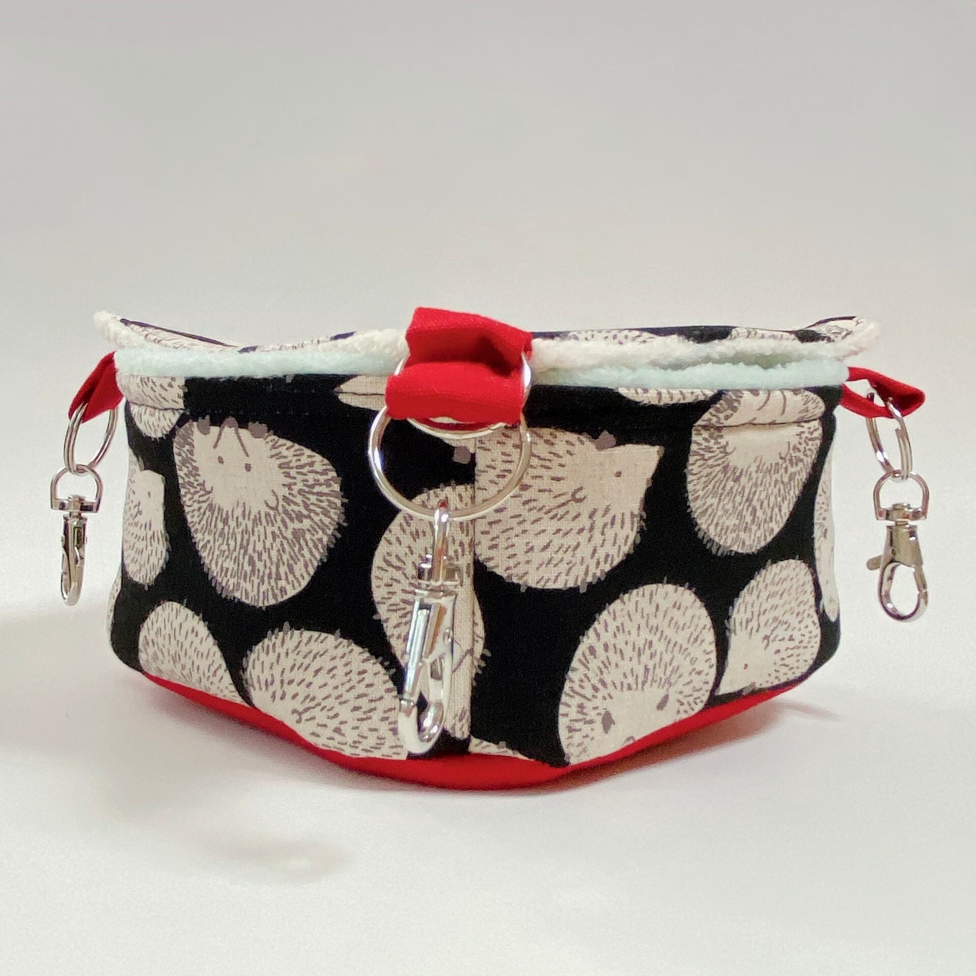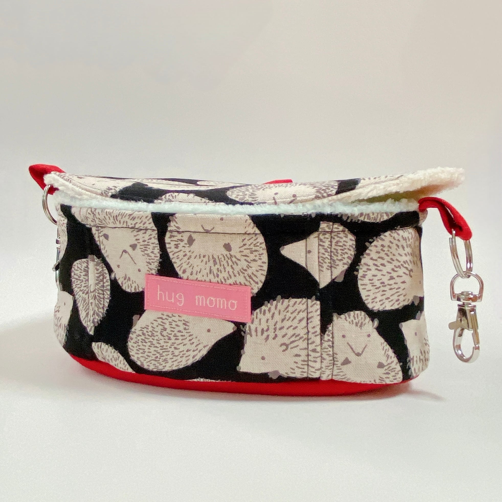 【5周年記念SALE】コーナーポーチ(ハリネズミ柄/黒地)*モモンガポーチ